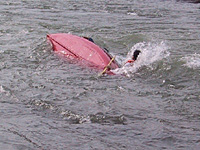 | ●転覆隊もまーっ青。激闘カヌー!! か? | ||