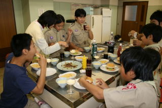翌朝は、皆寝坊して、配給の合図から活動が始まりました。火付けは、そこそこうまくできたように見え