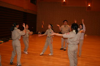 最初は乗り気じゃなかったスカウトもいたようだけど、午前中の練習ではみんな振り付けや台詞を しっかりと練習していて、真剣に取り組んでいる様子が伺えました。