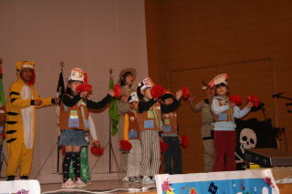 スワロー班。ポニョの音楽に合わせて踊りました。