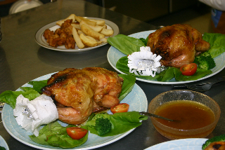 鳥の丸焼きに、