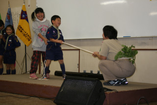 ビーバーの可愛い演技に始まり、途中楽しいゲームを交えながら、ボーイ隊のちょっと?なスタンツで 締めました。なかなかみんなのアドリブ演技は素晴らしかったですよ。もうちょっと内容を考えてもらえれば 言うことありません。