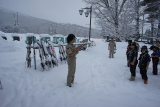 今年は久しぶりに、福島県の沼尻スキー場で行いました。例年になく雪が多く、 朝礼は、2日間とも雪の中での実施となりました。