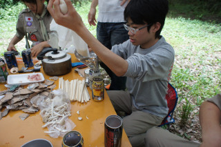 今回は、空き缶を使った炊飯に挑戦してみました。初めての挑戦だったこともあり、お米の量と、 水加減、そして火加減の調整が意外と大変で苦労しました。何とか食べられる状態にはなりましたが、 少し固めだったようです。