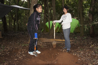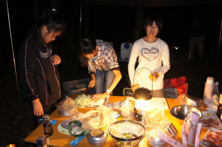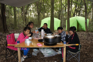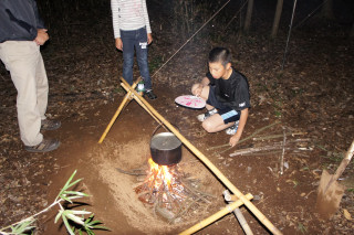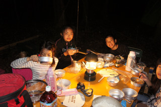 何とか雨も最後まで持ってくれて、快適なキャンプになりました。今回は、堀かまどということで、 設営も無事予定通りに終え、火起こしも順調にでき、おいしい夕食にありつけたようです。