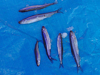 念願のわかさぎを釣って、ご満悦のOG1海老原副長。