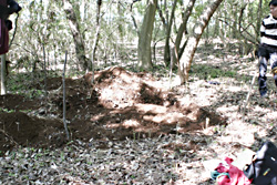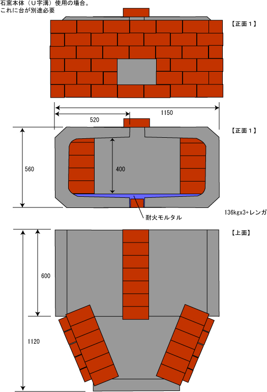 2006年1月、阿見第1団のスキー訓練の時、誰からともなく新キャンプ場ができたら「石窯」を作って、スカウトや保護者とワイワイ、パンやピザを焼いて食べたいという話となりました。 2月から、本格的に新キャンプ場の整備が始まり、5月末のスカウト祭では、保護者にキャンプ場の開拓現場を披露し、開拓整備の協力を仰ごうと考えています。そこで、それを促進するために、ちょっと時機は早いのですが、石窯を作って、それをきっかけに保護者のコミュニケーションを図ろうということで、プロジェクトをたちあげました。 耐火煉瓦などで本格的石窯を作るには時間がありませんので、今回は試作炉ということでU字溝を利用したものを作ります。U字溝とは言っても幅60cm高さ55cm長さ70cmもの大きなものを使います。重量は1個140kgにもなります。これを3つか4つ合わせて、隙間を耐火煉瓦でふさぎ、全体を耐火セメントで覆ってみたいと思います。 使い勝手を考えると、窯の底が腰の高さ程度にくる必要がありますが、これだけの重量のモノを載せる台をあのキャンプ場のフカフカ腐葉土の上に作るとなると、それだけでも本格的な土木工事が必要になってしまいます。そこで、発想を変えて、地面の上に石窯を作り、作業するところは地面を掘り下げて作る事にしたいと思います(初期の阿見1ボーイ隊のキャンプは、土を掘ってテーブルと椅子にして食事をしたものです。それをパクリました。)。 | |