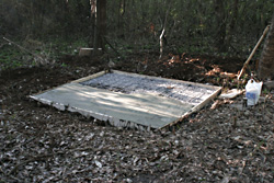 | 1.まず、石窯の重量に耐えられる 地盤ではないので、コンクリートの 基礎を作ります。 |